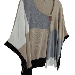 Calvin Klein Black Tan Colorblock Gold Accent Poncho Sweater