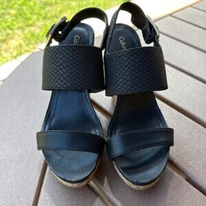Calvin Klein Black Tan Wedge Sandals Nadin Size 7.5