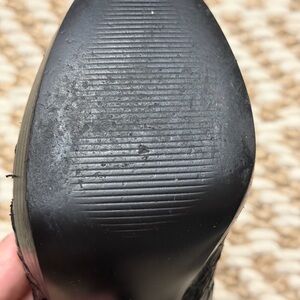 BOTTOM HEEL HAS SOME SCUFFING BUT NOT BAD THATS TO BE EXPECTED WHEN WALKING OBVIOUSLY 🙄