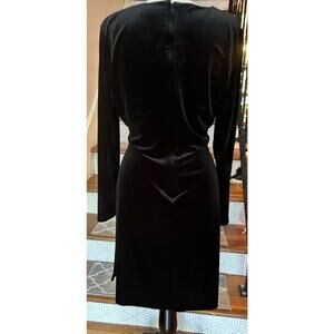 Calvin Klein Black Velvet Midi Dress with Draped Detail Size 14