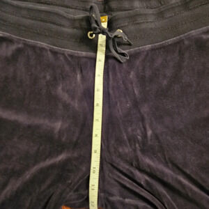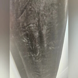 Comfortable flat front wide leg black velvet pants with wide elastic waist and string tie. Slight rubbing off of the velvet noted on the right leg, please see last picture. Overall good used condition.