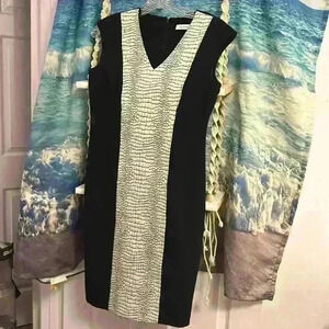 Calvin Klein Black & White Animal Print Knee Length Dress Size 6