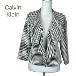 Calvin Klein Black White Basketweave Coastal Grandma Ruffle Jacket NWOT Size 4P