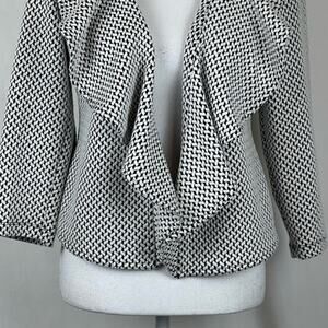Calvin Klein Black & White Basket Weave Coastal Grandma Ruffled Jacket NWOT