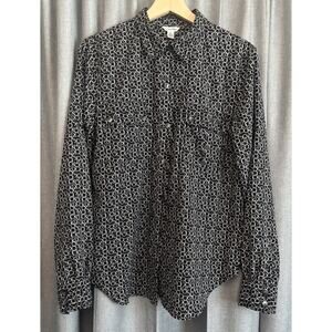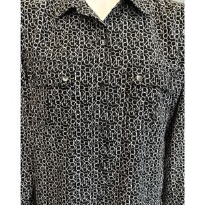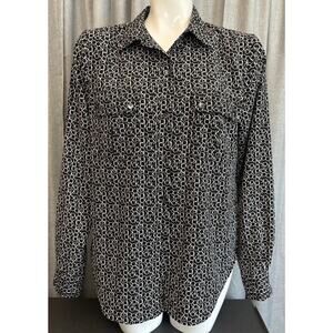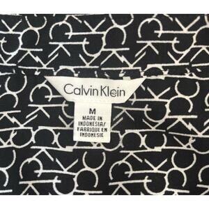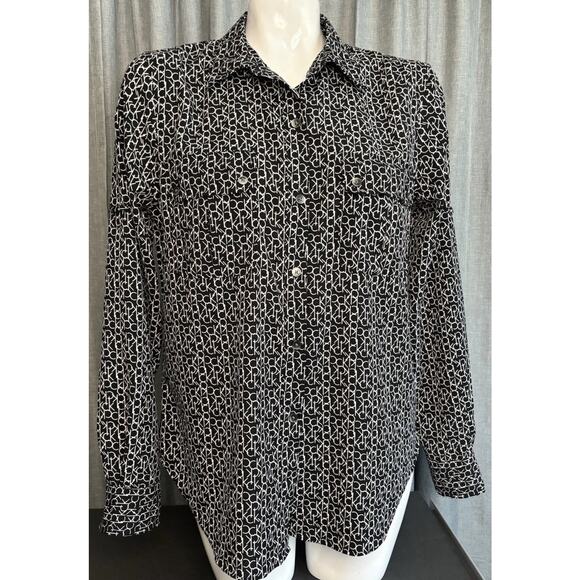 Calvin Klein Black & White CK All Over Logo Women's Long Sleeve Shirt Blouse M