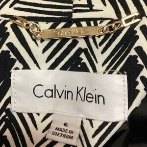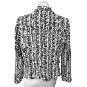 Calvin Klein Black White Chevron Printed Open Front Draped Blazer Coat Jacket 6
