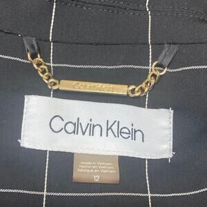 Calvin Klein Black White Grid Half Sleeve Open Blazer Coat Suit Jacket Size 12