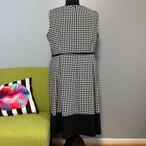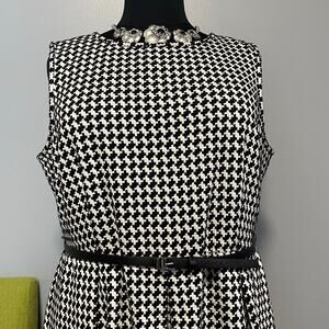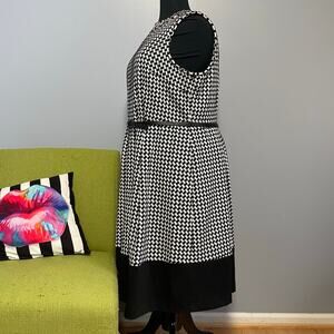 Calvin Klein Black White Houndstooth Belted Fit and Flare Dress 22W