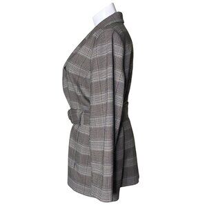 This Calvin Klein blazer enhances your professional wardrobe with a structured plaid design, belted waist, and comfortable blend fabric. Ideal for office settings, it offers a polished and timeless look.