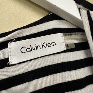 Calvin Klein Black White Jersey Knit Striped Knee Length Bodycon Dress Size 4