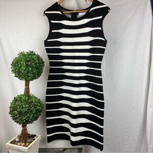 Calvin Klein Black & White Sleeveless Print Knit Dress M