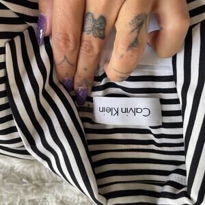 Calvin Klein Black White Stripe One Button Blazer Size 4
