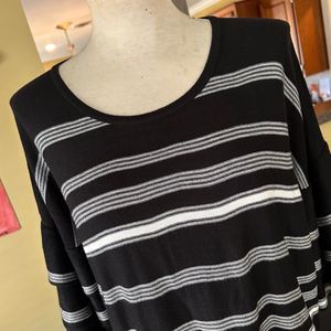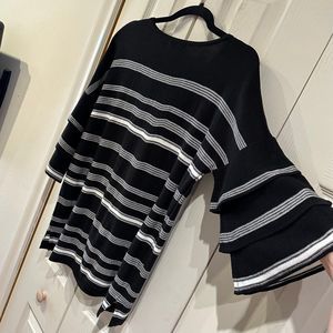 Calvin Klein black & white striped tunic length sweater with ruffled bell sleeves, size S. (Easily fits a M or L, depering on preferred fit!)