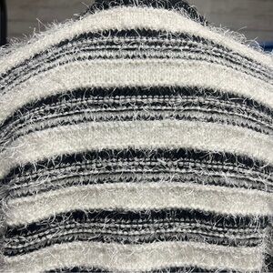 Calvin Klein Black White Striped Open Front Fuzzy Cardigan Sweater Size Medium