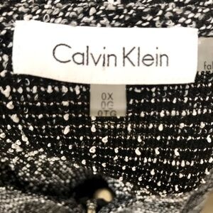 Calvin Klein Black White Tunic Top Logo Zipper Silver Accent Tiered Layer Sz 0X