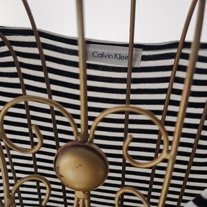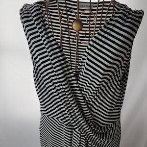 Calvin Klein Black & white striped dress with faux wrap, jersey stretch rayon spandex blend