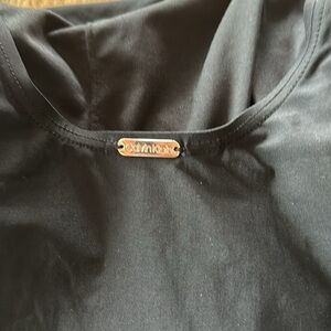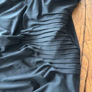 Chic black one-piece swimsuit. Features elegant design with subtle ruching. Perfect for poolside or beach.