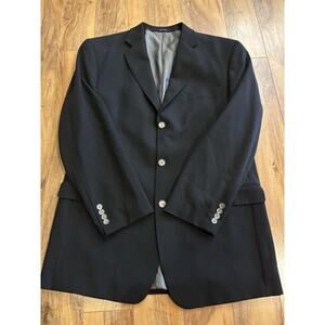Calvin Klein Black Wool Sport Coat Suit Blazer Jacket Solid Sz 43L 3 Button