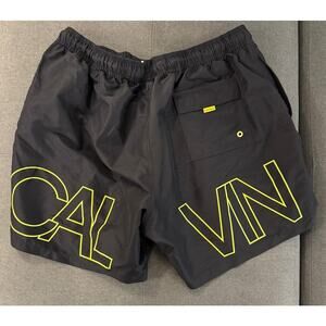Calvin Klein Black Yellow Logo Mesh Lined Swim Trunks Men’s Size XXL