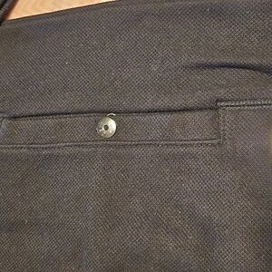Stylish black zip-up jacket with a sleek design. Features a full front zipper and side pockets.