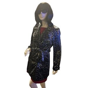 Calvin Klein Black and Gray Animal Print Double Breasted Rain Jacket Size M