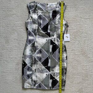 Elegant sleeveless dress with geometric pattern. Features a fitted silhouette. Perfect for any occasion.