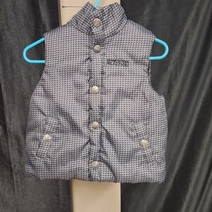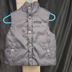 Stylish kids vest by Calvin Klein. Features a black and gray pattern. Perfect for layering.