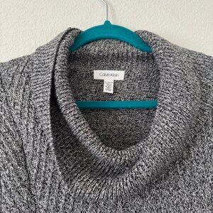 Calvin Klein Black and Grey Cowl Neck Cable Knit Pullover Sweater Women's XL