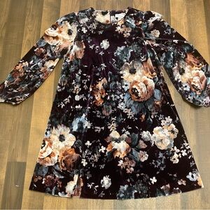 Step into elegance with this Calvin Klein sundress, featuring a romantic off-the-shoulder neckline and charming puff sleeves. The black base is beautifully adorned with pink floral patterns, making it perfect for a wedding guest or cocktail occasion.