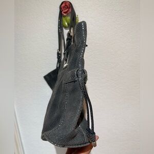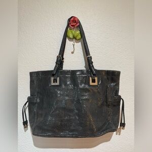 Calvin Klein Black and Silver Leather Tote with Distressed Finish