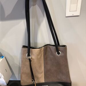 Calvin Klein Black and Tan Tote Bag with Modern Design