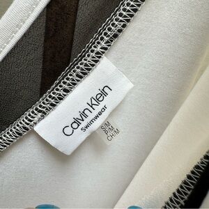 Calvin Klein Black and White Asymmetrical Swimsuit Dress Cover-Up Size Small