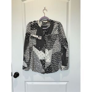 Calvin Klein Black and White Button Down Mixed Print Blouse Size XS