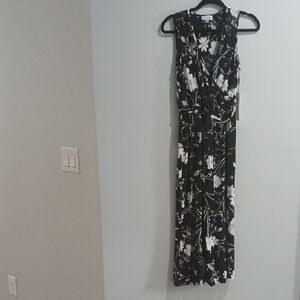 Calvin Klein Black and White Floral Croped Jumpsuit with VNeck Sz 2 New With Tag