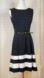 Elegant sleeveless A-line dress with a belted waist and bold black & white colorblock hem. Looks like new and perfect for office, cocktail, or formal events.