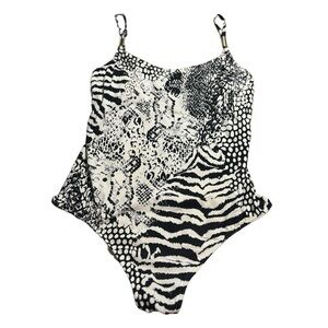 Calvin Klein Black and White One Piece Swimsuit Scoop Neck Adjustable Straps