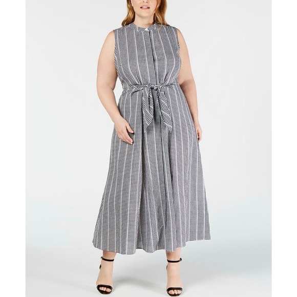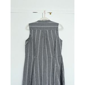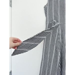 Reposhing this cute dress purchased from @maisonlilac. This Calvin Klein sundress features a chic black and white checkered pattern, perfect for casual or work settings. The sleeveless design with a mock neck and Mandarin collar offers a modern touch, while the midi length and flowing silhouette ensure comfort and style. Ideal for warm weather, this dress is both versatile and elegant.