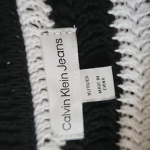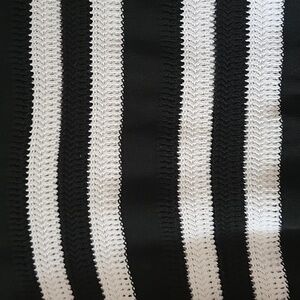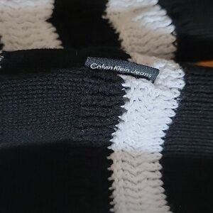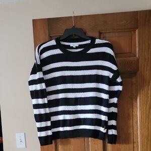 Stylish black and white striped sweater. Perfect for casual wear. Worn 2x, no flaws. Size XL but fits morw like a large. It was laid flat to dry