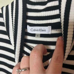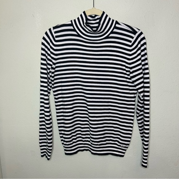 Calvin Klein Black and White Striped Turtleneck Sweater Size Small