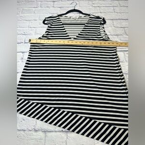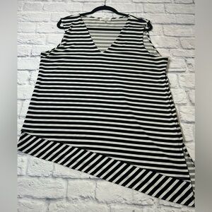 Calvin Klein Black and White Striped, VNeck, Assymetrical Hem, Sleeveless Top.
