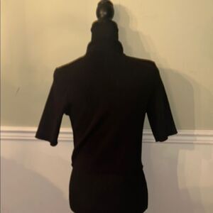 Stylish black crop top with a front zipper. Short sleeves and high collar. Perfect for casual wear.