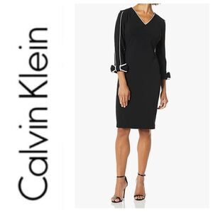 Calvin Klein Black V Neck Sheath Dress with Contrast Piping