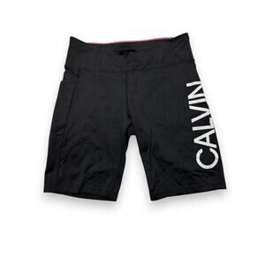 Calvin Klein Black/White Compression Athletic Shorts With Logo Women's Large