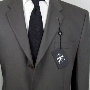 Calvin Klein Blazer 44R Wool Gray 3-Button cK Logo Made in Canada Vintage