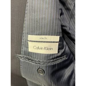 Calvin Klein Blazer Mens 40R Navy Blue Striped Slim-Fit 100% Wool Suit Jacket