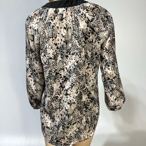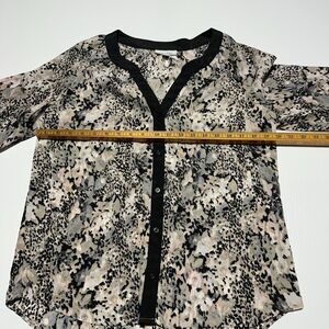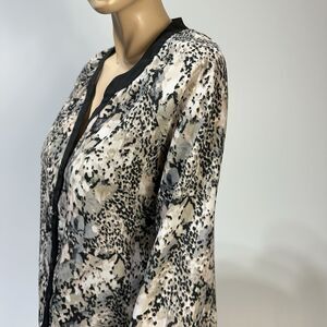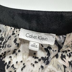 Calvin Klein Blouse Button Front 3/4 Sleeve Abstract Animal Print Women's Size M