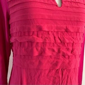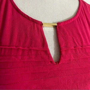 Calvin Klein Blouse Medium Hot Pink Tiered Ruffle Keyhole Neck Preppy 3/4 Sleeve