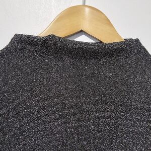 Calvin Klein - Blouse Metallic Knit Cap Sleeve Mock Neck - Size L - Black Silver