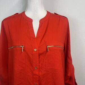 Calvin Klein Blouse Tunic size Large Cherry Red Gold Zippers Lagenlook Career