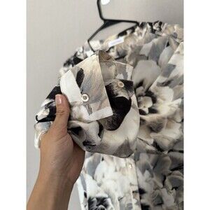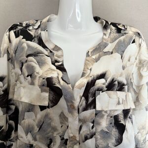 Calvin Klein Blouse Womens XL Multicolored Floral Button Up Top Roll Tab Sleeve